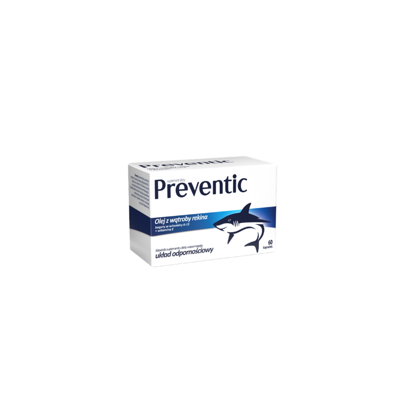 Preventic Extra - suplement diety zawierający olej z wątroby rekina wzbogacony witaminą E. Produkt przeznaczony dla dzieci powyżej 3 roku życia i osób dorosłych.