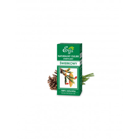 Naturalny olejek świerkowy otrzymywany z młodych pędów świerku pospolitego. Działa pobudzająco i odświeżająco na zmęczony umysł. Usuwa objawy zmęczenia, wyczerpania nerwowego i nerwobóle. Może ograniczyć nadmiernie wydzielanie potu i pobudzić krążenie. Dzięki właściwościom rozgrzewającym może łagodzić objawy reumatyzmu i artretyzmu.