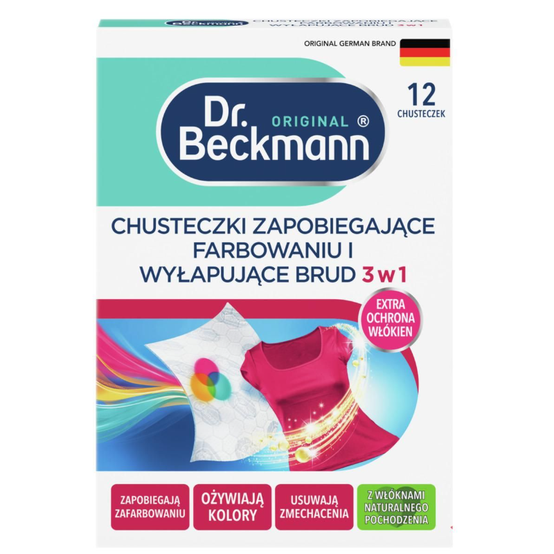 chusteczki wyłapujące kolor i wspomagające usuwanie brudu to nowe zrównoważone rozwiązanie marki Dr. Beckmann, chroniące ubrania przed zafarbowaniem.