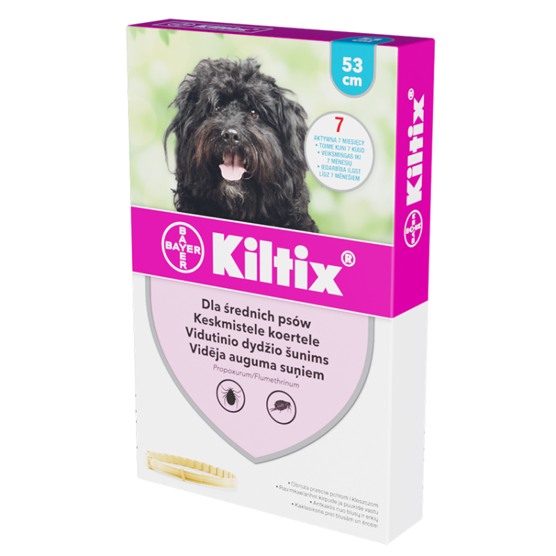 Działanie preparatu rozpoczyna się w ciągu pierwszej doby od założenia obroży i utrzymuje się przez sześć miesięcy w przypadku Kiltixu dla małych psów i siedem miesięcy w przypadku Kiltixu dla średnich i dużych psów.
