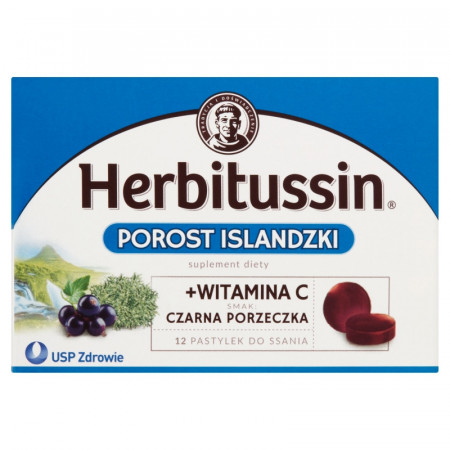 Herbitussin Porost Islandzki to preparat w postaci pastylek do ssania, który został powstał w wyniku połączenia doświadczenia mnichów i najnowszych osiągnięć naukowych. Zastosowany w pastylkach porost islandzki wykazuje działanie łagodzące na gardło, krtań i struny głosowe oraz stanowi wsparcie dla prawidłowego funkcjonowania układu oddechowego. Porost islandzki jest skłanikiem bogatym w substancje śluzowe, które powlekając i nawilżając błony śluzowe jamy ustnej i gardła, niwelują uczucie suchości, pieczenia, bólu gardła, szczególnie w czasie przełykania. Dodatek witaminy C wspomaga prawidłowe funkcjpnowanie układu odpornościowego i skraca czas trwania infekcji.