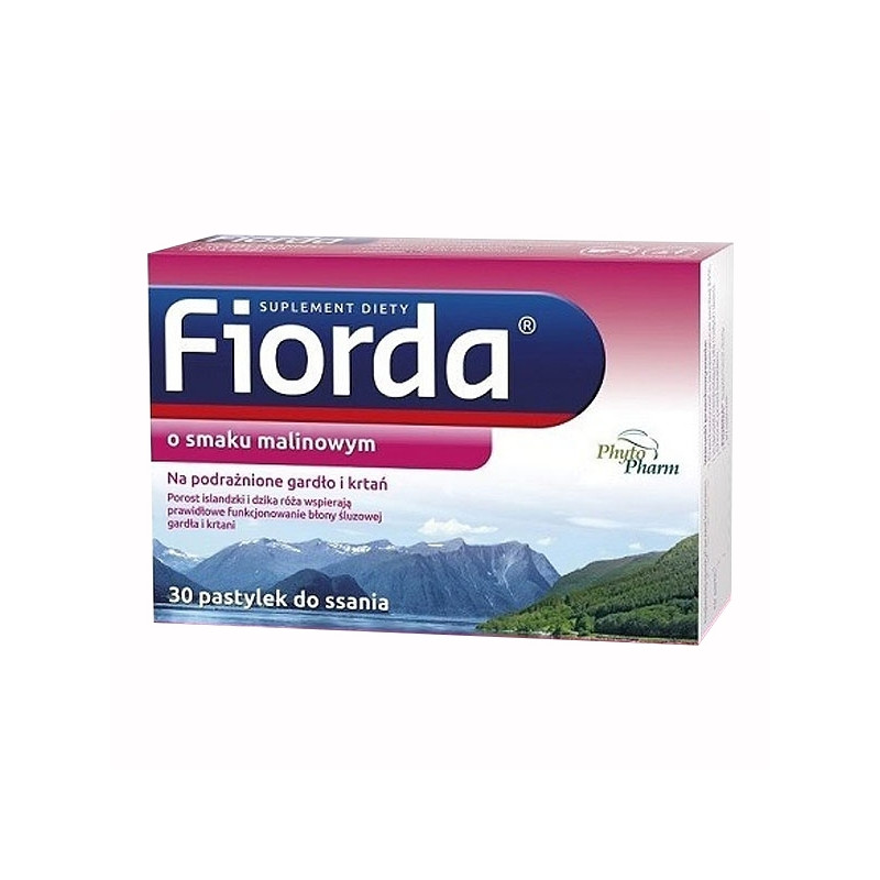 Fiorda, smak malinowy, 30 pastylek do ssania na gardło