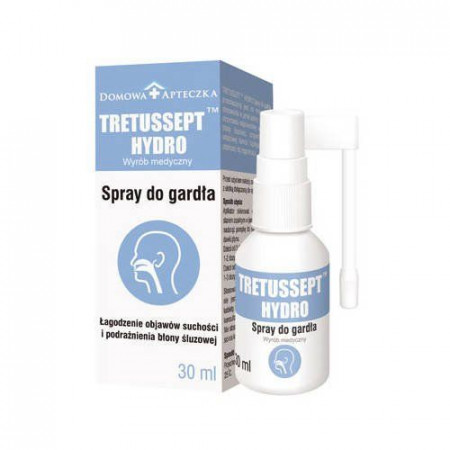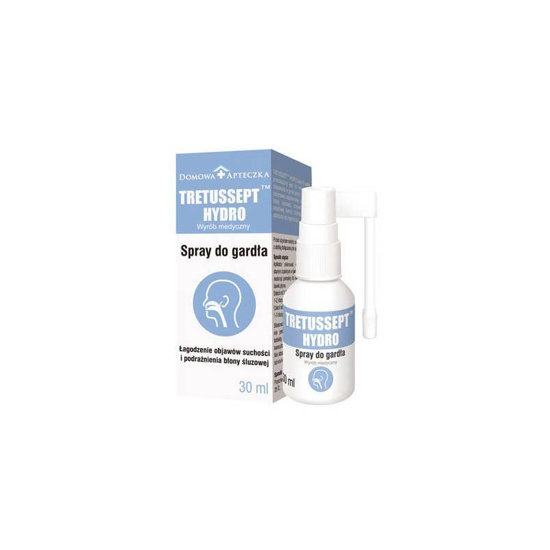 Wyrób medyczny TRETUSSEPT HYDRO, spray do gardła przeznaczony jest do podawania przez osoby dorosłe. Posiada specjalny aplikator, który precyzyjnie podaje dawkę płynu. Aplikator należy skierować w miejsce objęte stanem zapalnym w jamie ustnej lub gardle, nacisnąć pompkę do momentu uwolnienia dawki płynu.