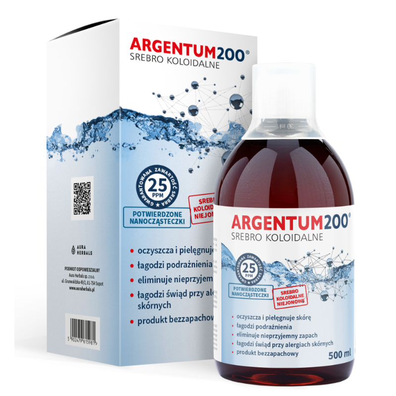 Aura Herbals srebro koloidalne 25 ppm, Argentum 200, tonik 500 ml