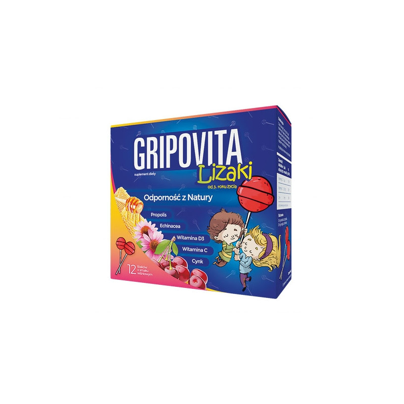 Gripovita Lizaki zawiera naturalny ekstrakt z propolisu oraz wyciąg z echinacei, a także witaminę D, C oraz cynk. Przeznaczony dla dzieci powyżej 3 roku życia.