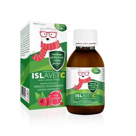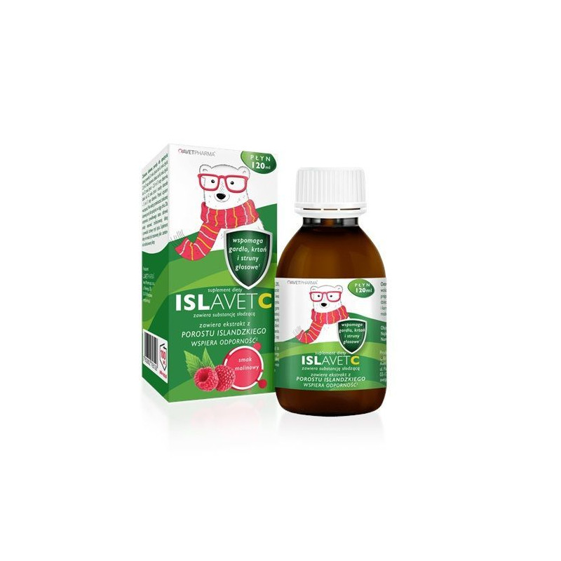 Avet Pharma Islavet C to suplement diety dla dzieci powyżej 3. roku życia i osób dorosłych wskazany do spożycia w celu dostarczenia składników wzmacniających naturalną odporność organizmu i wspomagających ochronę gardła, krtani i strun głosowych.