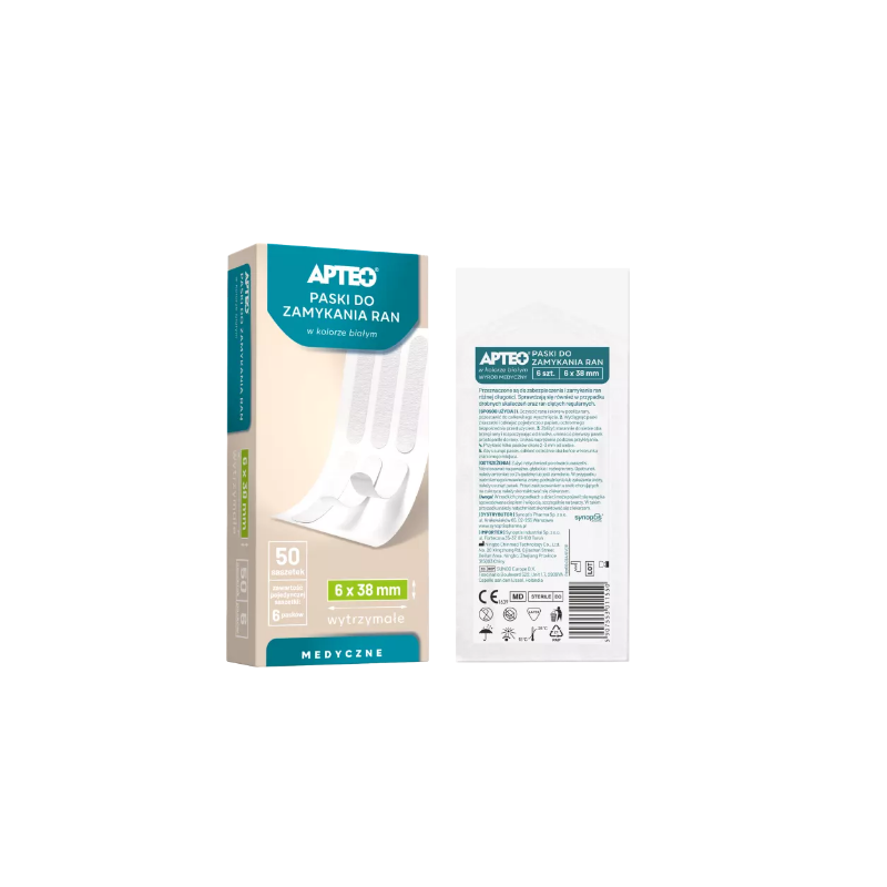Apteo Paski do zamykania ran w kolorze białym 6 x 38 mm
