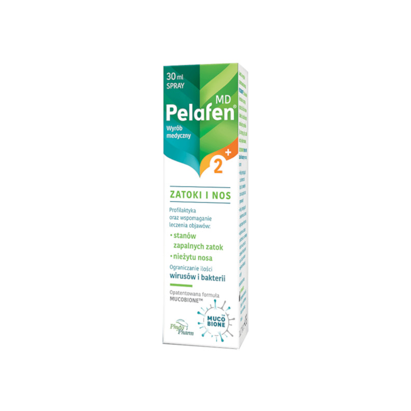 Pelafen MD Zatoki i nos to wyrób medyczny przeznaczony do profilaktyki oraz wspomagania objawów stanów zapalnych zatok i nieżytu nosa różnego pochodzenia, w celu ułatwienia mechanicznego usuwania drobnoustrojów z jamy nosowej.