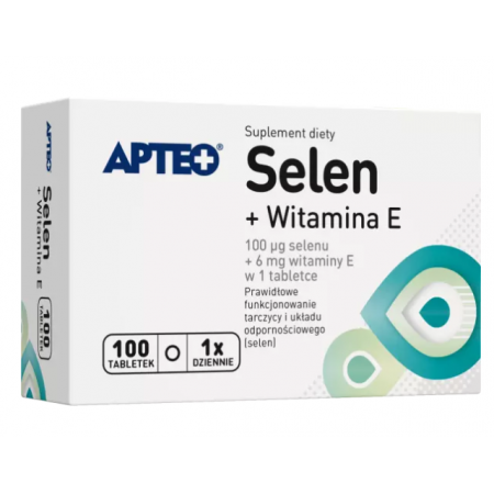 1 tabletka zawiera: 100mcg selenu (selenian IV sodu) (181%)*, 6mg witaminy E (octan DL-alfa tokoferylu) (50%)*.