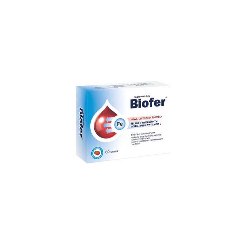 Biofer to optymalne połączenie dwóch form żelaza o wysokiej przyswajalności: hemowego i niehemowego (diglicynian żelaza) z witaminą C. Jest przeznaczony dla kobiet w ciąży i karmiących piersią, osób odczuwających przemęczenie oraz osób o zwiększonym zapotrzebowaniu na żelazo.