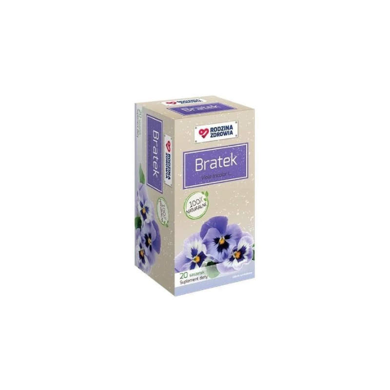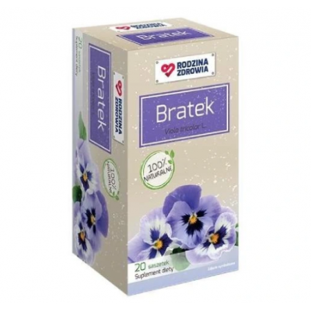 Suplement diety Rodzina Zdrowia Bratek to preparat w postaci ziół w saszetkach gotowych do zaparzenia.