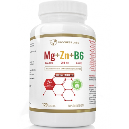 Składnik odżywczy – magnez (cytrynian magnezu), Substancja wypełniająca – sorbitol, składnik odżywczy – glukonian cynku, substancja przeciwzbrylająca – sole magnezowe kwasów tłuszczowych, składnik odżywczy – witamina B6 (chlorowodorek pirydoksyny).