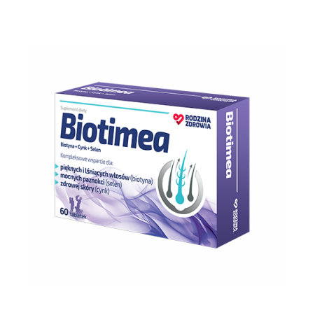 Rodzina Zdrowia Biotimea polecany jest osobom dorosłym w celu uzupełnienia codziennej diety w biotynę i dwa ważne składniki mineralne: cynk i selen, wpływające na utrzymanie prawidłowego stanu włosów.