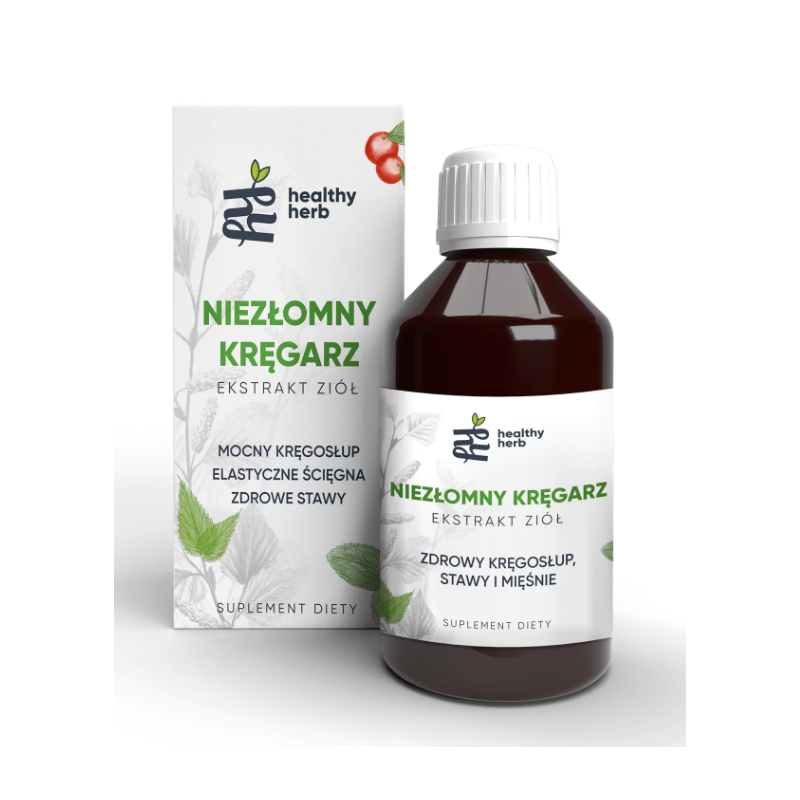 Niezłomny Kręgarz to kompozycja ziół stworzona by wspierać struktury kręgosłupa, stawów i kości. Specyfik jest esencją selektywnie wybranych ziół, dzięki którym zadbasz o elastyczność ścięgien i zdrowie stawów. Pokrzywa zwyczajna wzmocni kości, paznokcie i włosy, a jarząb pospolity ożywi ciało i dzięki dużej zawartości przeciwutleniaczy opóźni procesy starzenia. Ekstrakt z liścia brzozy brodawkowatej poprawi mobilność i elastyczność stawów.