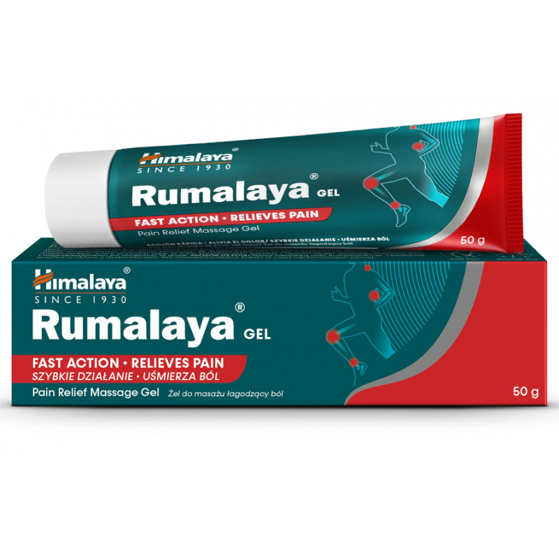 Himalaya RUMALAYA® GEL to szybko działający żel do stosowania miejscowego, który przynosi ulgę w bólach stawów, szyi, pleców i ramion poprzez działanie chłodzące i rozgrzewające po wtarciu w skórę. Żel Pomaga zmniejszyć objawy dyskomfortu w stawach i mięśniach.