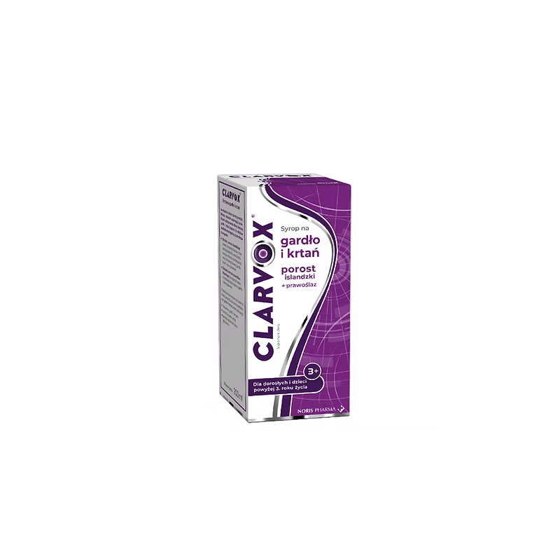 CLARVOX Syrop na gardło i krtań z porostem islandzkim i prawoślazem to preparat przeznaczony dla dorosłych i dzieci powyżej 3. roku życia z podrażnionym gardłem i krtanią, którzy odczuwają: