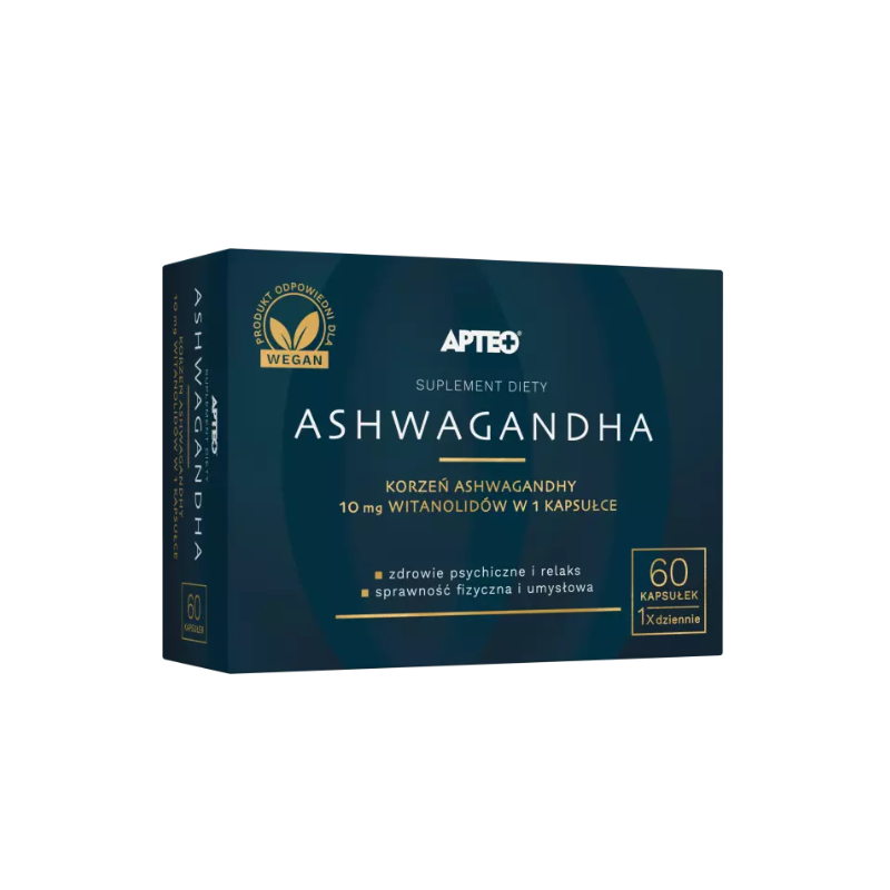 Wyciąg z korzenia witanii ospałej - ashwagandhy (Withania somnifera) standaryzowany na 4% witanolidów, DER 12:1; substancja wypełniająca: celuloza; żelatyna; substancja przeciwzbrylająca: sole magnezowe kwasów tłuszczowych, substancja wypełniająca: dwutlenek krzemu.