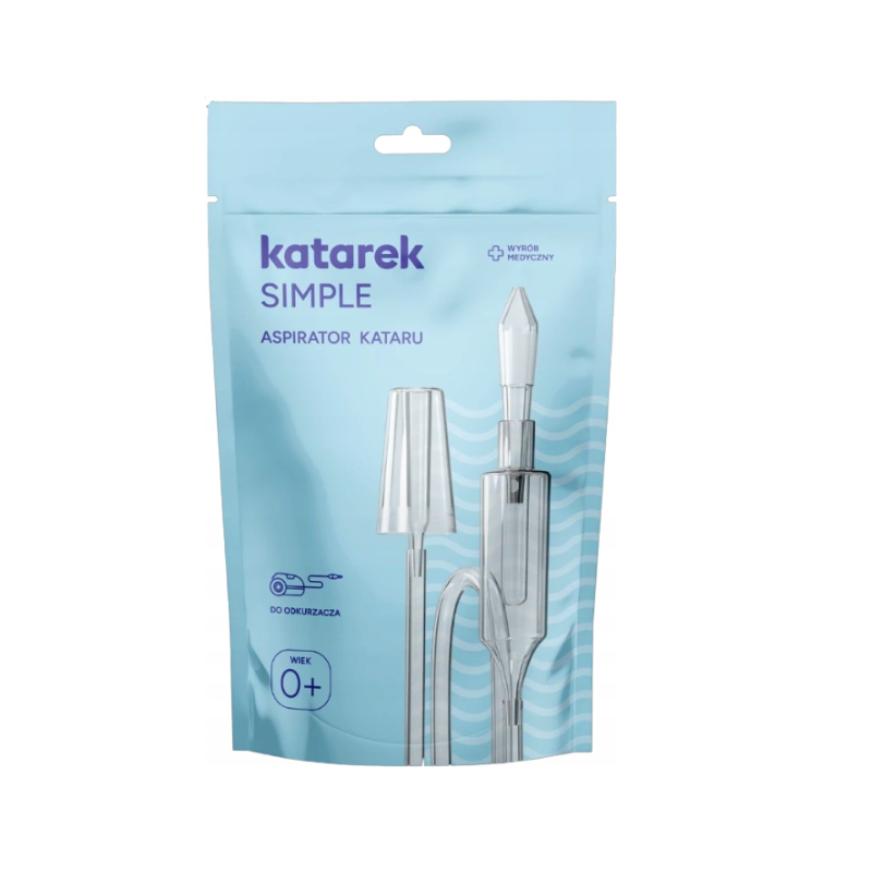 ZASTOSOWANIE: Wyrób medyczny – aspirator do nosa dla dzieci, przeznaczony do domowego odciągania wydzieliny nosowej w przebiegu kataru. Ułatwia udrażnianie i oczyszczanie nosa, co wspiera swobodne oddychanie, karmienie i sen. Działa dzięki sile ssącej odkurzacza (stała, jednostajna siła), wyposażony w zintegrowaną, nierozkręcaną komorę ze zbiorniczkiem na wydzielinę oraz reduktor siły ssącej dla komfortu i bezpieczeństwa niemowląt. Przeznaczenie: nos; problem: katar; układ: oddechowy; pory stosowania: dzień i noc; wiek: dla dzieci (0–36 mies. i starsze dzieci). Sposób użycia: podłączyć do rury odkurzacza (okrągły przekrój), przyłożyć końcówkę do każdego otworu nosowego na 3–4 sekundy. Zalecany 3 etapowy proces: 1) rozrzedzić wydzielinę kilkoma kroplami soli fizjologicznej, 2) odciągnąć aspiratorem, 3) nawilżyć śluzówkę solą. Po użyciu umyć komorę ciepłą wodą z mydłem. Przeciwwskazania/ostrożność: hemofilia lub częste krwawienia z nosa — przed użyciem konsultacja z lekarzem; przy użyciu u więcej niż jednego dziecka stosować czysty aspirator; zapoznać się z instrukcją; przechowywać w temperaturze pokojowej, chronić od światła i wilgoci, poza zasięgiem dzieci; nie stosować, jeśli opakowanie było wcześniej otwierane lub uszkodzone; przerwać stosowanie w razie działań niepożądanych.