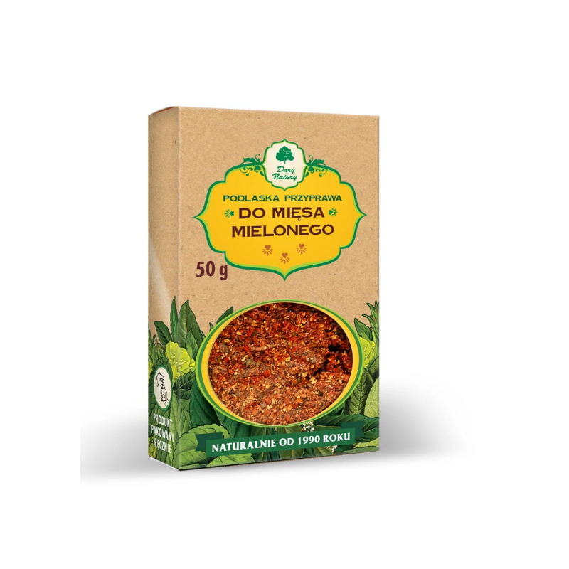warzywa suszone ( marchewka, pasternak, pietruszka nać), majeranek, papryka ostra, tymianek, gorczyca biała, gałka muszkatołowa, kolendra, szałwia, pieprz czarny, ziele angielskie, cebula suszona.