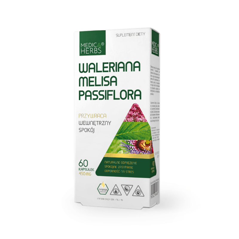 Waleriana, passiflora i melisa wspólnie wspierają stan naturalnego odprężenia oraz sprzyjają spokojnemu zasypianiu. Wspomagają utrzymanie dobrego samopoczucia w sytuacjach stresu i napięcia. Waleriana i melisa pomagają zachować prawidłowe funkcje poznawcze (pamięć i koncentrację). Wspierają również właściwe działanie serca i układu pokarmowego.