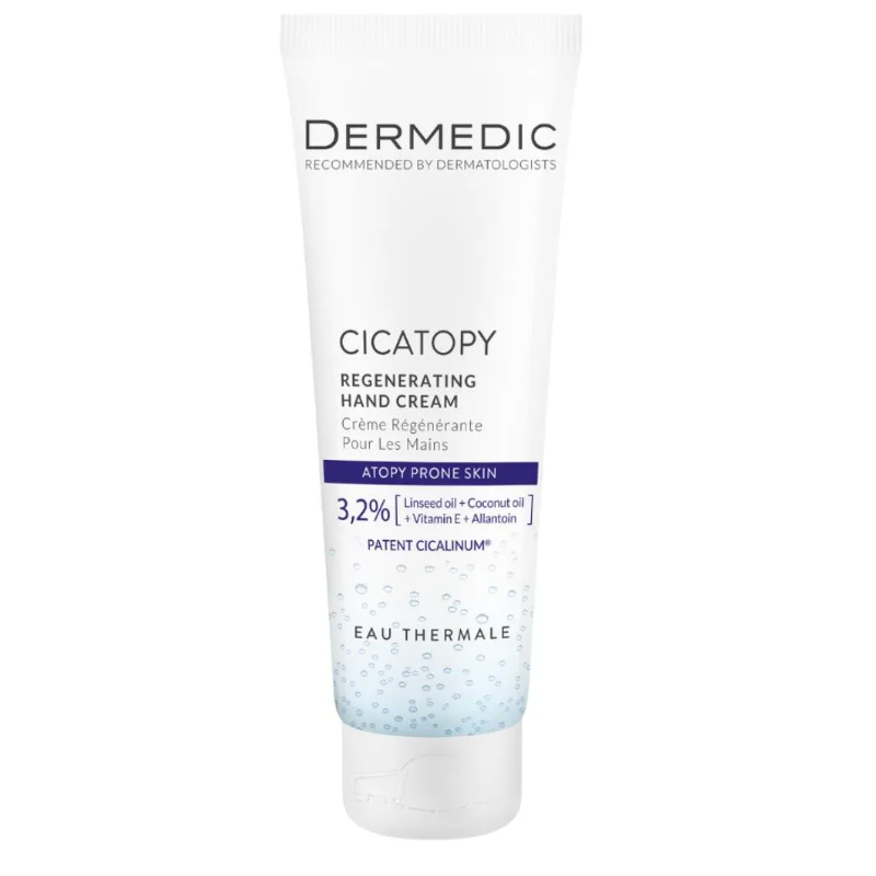 Regenerujący krem do rąk wspomagający odbudowę naskórka. Szybko się wchłania i nie pozostawia tłustego filmu na skórze. Zawiera opatentowany, innowacyjny kompleks Cicalinum®, opatentowany, innowacyjny kompleks o udowodnionej klinicznie skuteczności, który przywraca fizjologiczną równowagę mikrobiomu naskórka. Łagodzi objawy egzemy w tym świąd, podrażnienia, napięcie, suchość, zaczerwienienie i szorstkość.