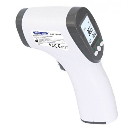 Termometr bezdotykowy Tech-Med F03BB na podczerwień zaprojektowano do pomiaru temperatury ciała lub wybranej powierzchni przy użyciu technologii promieniowania podczerwonego. Termometr na podczerwień nie jest inwazyjny, więc jest łatwiejszy i wygodniejszy w użyciu niż tradycyjne termometry doustne, pod ramię, do odbytnicze lub douszne. Jest rzeczywiście „bezkontaktowym” termometrem. Umożliwia pomiar temperatury ciała dorosłych i dzieci bez konieczności dotykania skóry. Dzięki F03BB nie ma potrzeby wprowadzania sondy termometru do jakiejkolwiek części ciała twojego niemowlęcia. Śpiące niemowlę nie obudzi się podczas kiedy termometr będzie w użyciu ani nie odczuje żadnego dyskomfortu podczas jego użycia kiedy nie śpi.