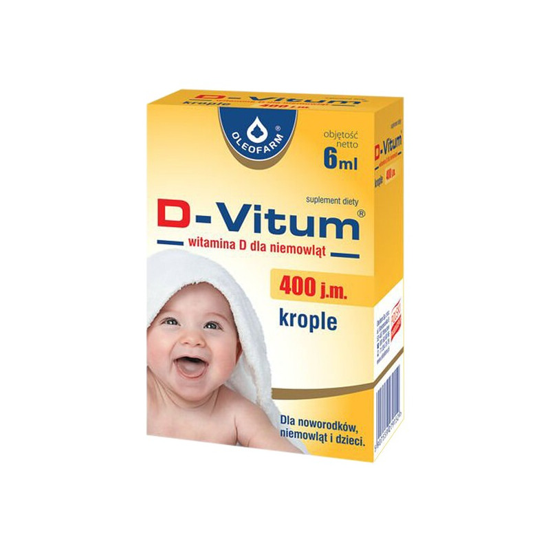 D-Vitum 400 j.m. - suplement diety w postaci kropel. Produkt przeznaczony dla noworodków, niemowląt i dzieci.\r