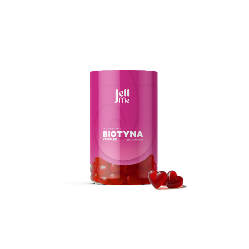 JellMe Biotyna Complex to suplement diety w postaci żelek zawierający w składzie m.in. niacynę, witaminę A, cynk i biotynę.